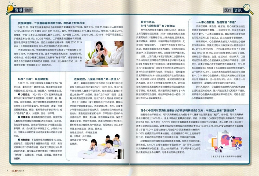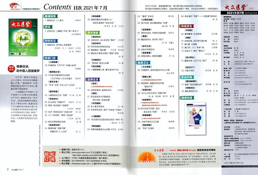 總之,該雜志是一本為普通讀者提供健康知識和資訊的權威期刊。通過準確、易懂的內容,讀者可以更好地了解和保護自己的健康,積極參與健康管理,過上更加充實、健康的生活。該雜志聘請了一批資深的醫學專家和科學記者,他們具有豐富的醫學背景知識和科學寫作經驗,確保雜志內容的準確性和權威性。雜志還定期與國內外著名醫療機構、研究機構和專家合作,根據最新的醫學研究成果和臨床實踐,不斷更新和完善內容,確保讀者獲得最新的醫學信息。