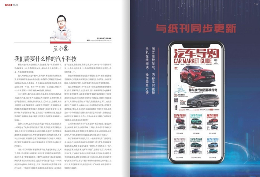 《汽車導購》雜志作為一本權威的汽車消費指南,我們的雜志內容包括多個方面。首先,我們深入分析各種汽車品牌和車型的特點,并提供詳細的購車指導。我們與多個汽車制造商合作,提供專業的試駕體驗和詳盡的車輛評測報告,以幫助讀者了解不同車型的性能、配置和價格。此外,我們還關注汽車市場的最新動態和趨勢,發布各類汽車行業資訊和新聞。我們通過深度報道和專家觀點,全方位了解汽車市場的變化和發展趨勢,幫助消費者了解市場動向,抓住購車機會。