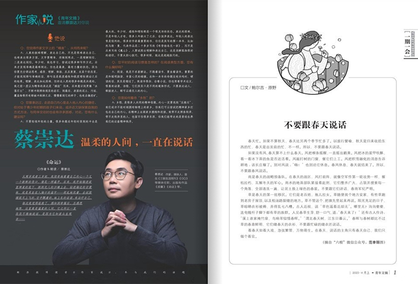 另一個特點是對優秀文化傳統的傳承和發揚。該雜志致力于傳播中國優秀文化,推介經典之作。它在文學以及其他領域都鼓勵原創和新銳思想,關注青年作者的潛力和創作能力。該雜志的編輯風格醇厚、樸實,注重文字的力量和感染力。它以易讀、易懂的方式向讀者傳達知識和思想,努力使復雜的問題變得淺顯易懂,并鼓勵讀者勇于思考和表達。同時,雜志還定期推出一些互動欄目以及青年作者征文活動,鼓勵讀者參與進來,展現自己的才華和創作能力。